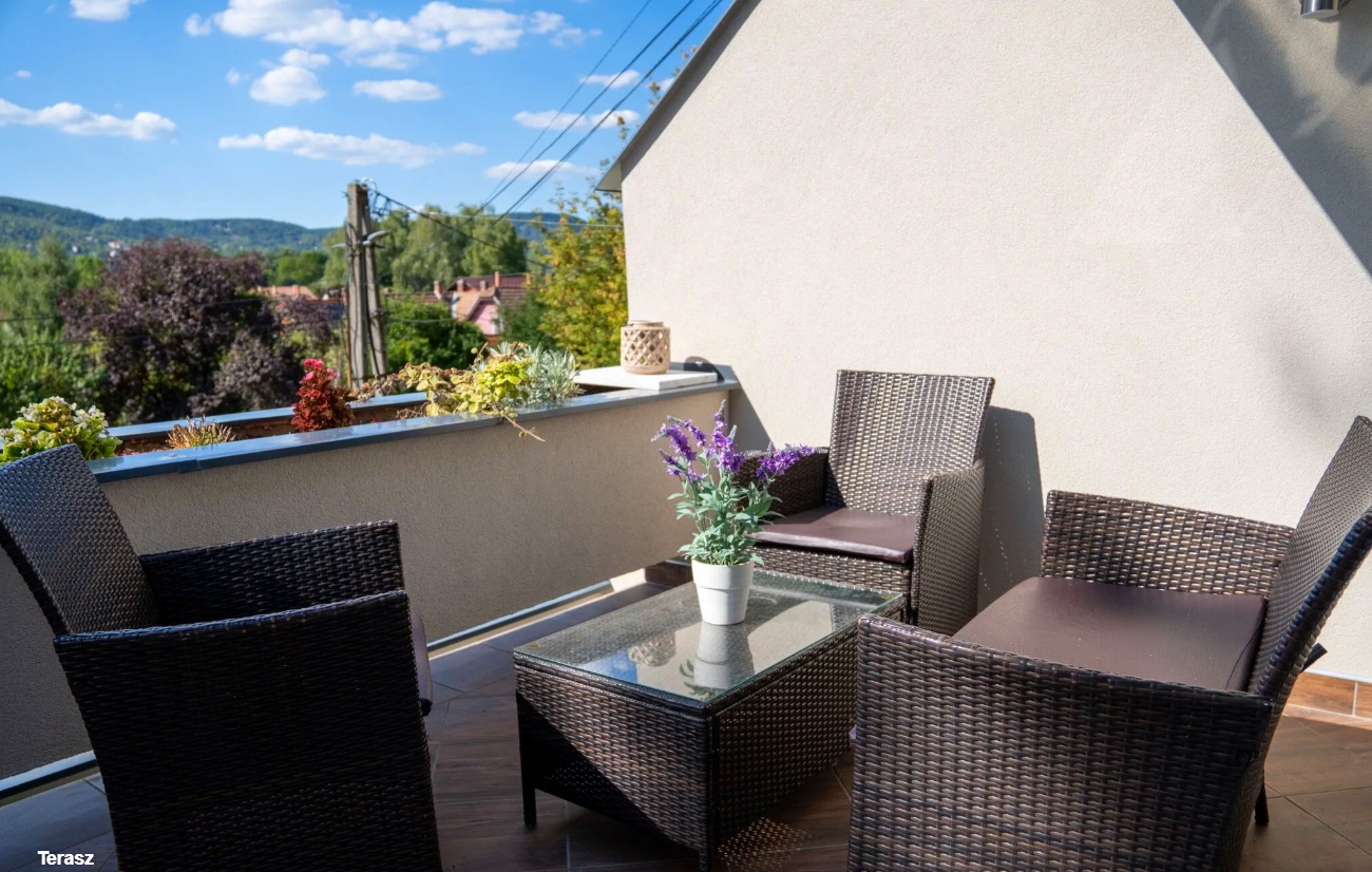 Az apartman egy társasházban került kialakításra, önálló, külön bejárattal, tágas terasszal.